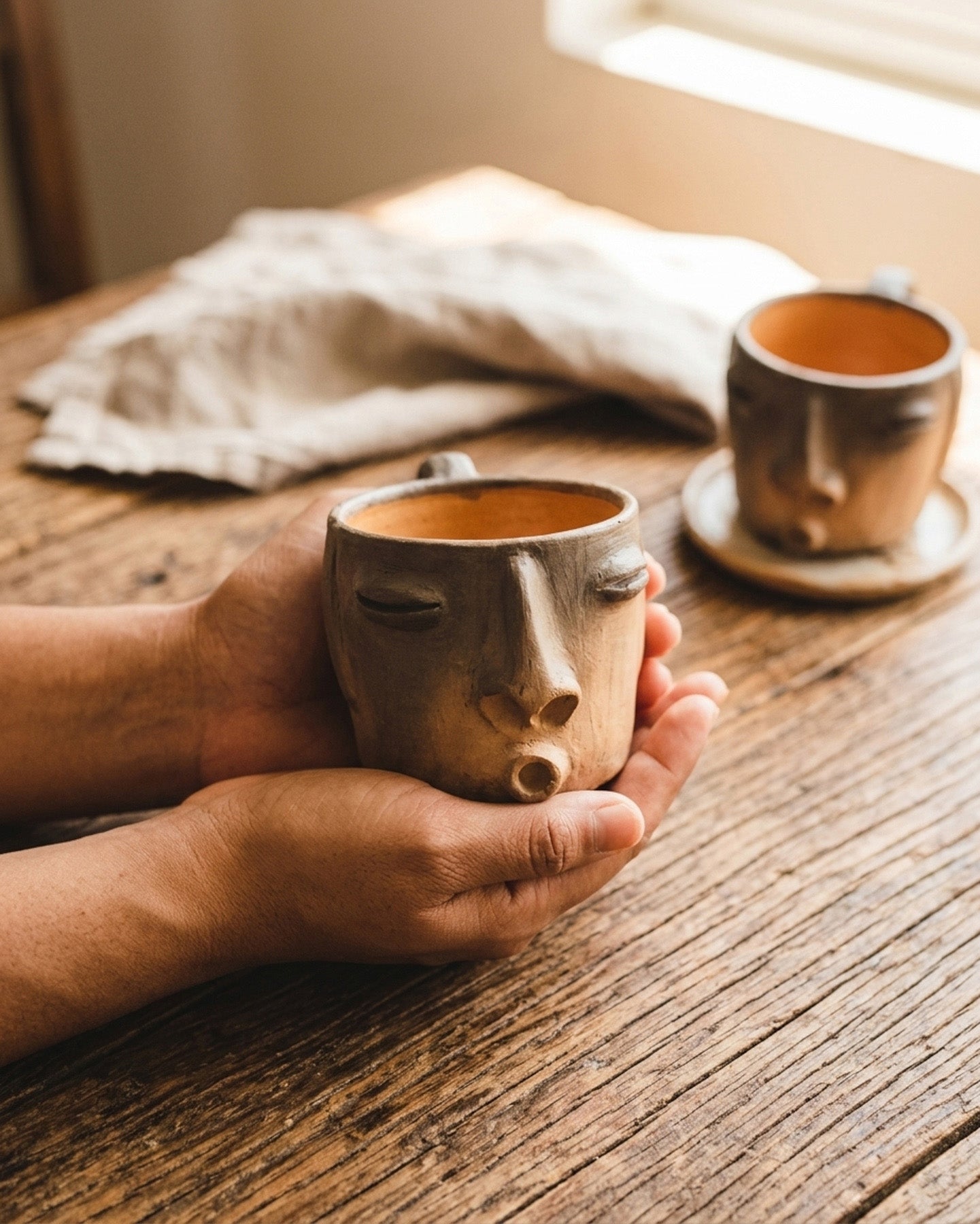 Handmade Oaxacan Whistle Face Coffee Cup 14oz - Barro Negro(Individual Cup)